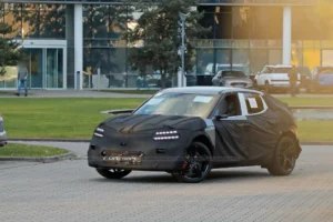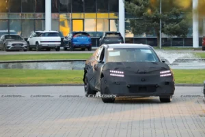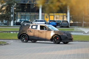 Casus fotoğrafçılarımız, Magma’yı Goodwood’daki tanıtım öncesi geçen yaz test ederken yakalamıştı. Ancak bu son prototip, çok daha fazla kamuflaja sahip çünkü aracın ızgarası ve çamurluk genişletmeleri – daha önce olmayan parçalar – takılı. Plastik ark dudakları, konseptte gösterilen agresif görünümlü yuvalara sahip değil, ancak stok GV’nin düz arklarından belirgin şekilde daha geniş. Kapının hemen önündeki ön çamurluğun alt kısmında Porsche 911 GT3 RS’e dair bir ipucu bile var ve bu tek benzerlik değil.