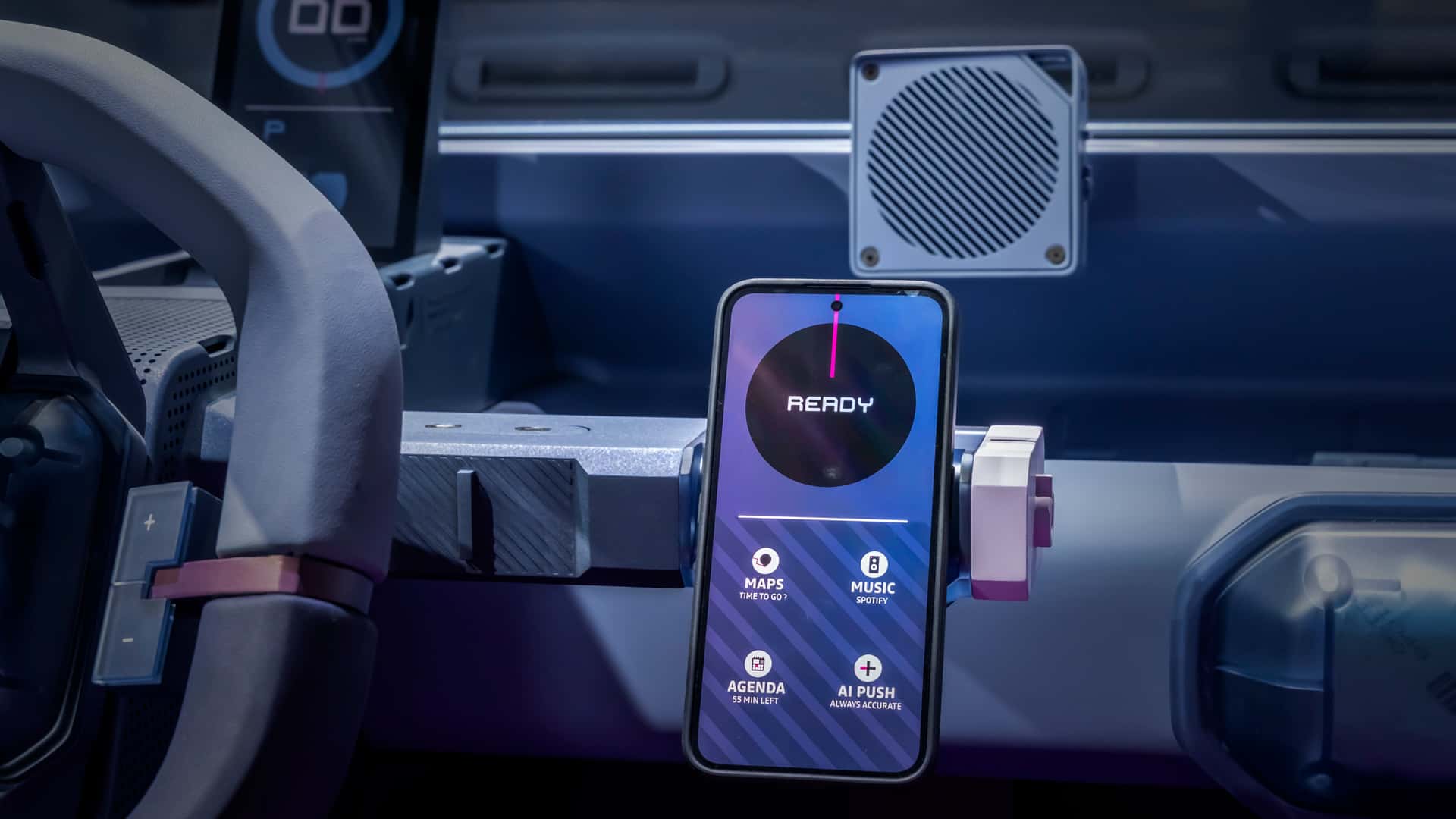 Aracın en dikkat çekici özelliklerinden biri de basitleştirilmiş teknoloji yaklaşımı. Geleneksel multimedya ekranı yerine sürücünün akıllı telefonu anahtar, navigasyon ve eğlence sistemi görevini üstleniyor. Bu telefona eşlik eden taşınabilir Bluetooth hoparlör ise ses sistemini oluşturuyor. Dijital gösterge paneli, iki hava yastığı ve modern bir direksiyon da iç mekân donanımları arasında yer alıyor.