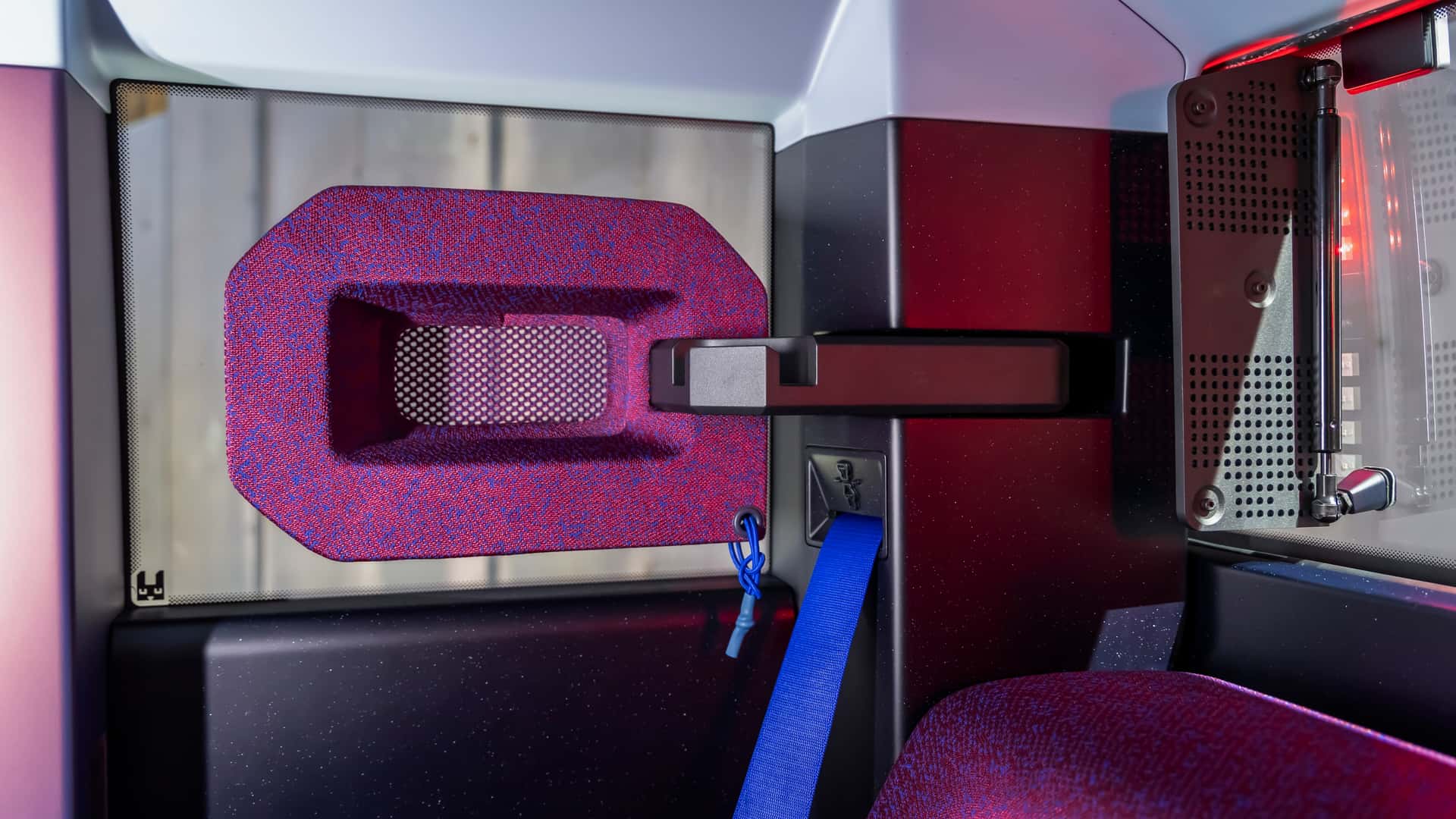 Gövde tek renk boyanmış olup, bazı bölgelerde geri dönüştürülmüş “Starkle” adı verilen malzemeden üretilen koruma panelleri kullanılmış. İlginç detaylar arasında kapı kollarının yerini alan kayışlar, camın arkasına gizlenmiş arka stoplar ve sürgülü açılan pencereler bulunuyor.