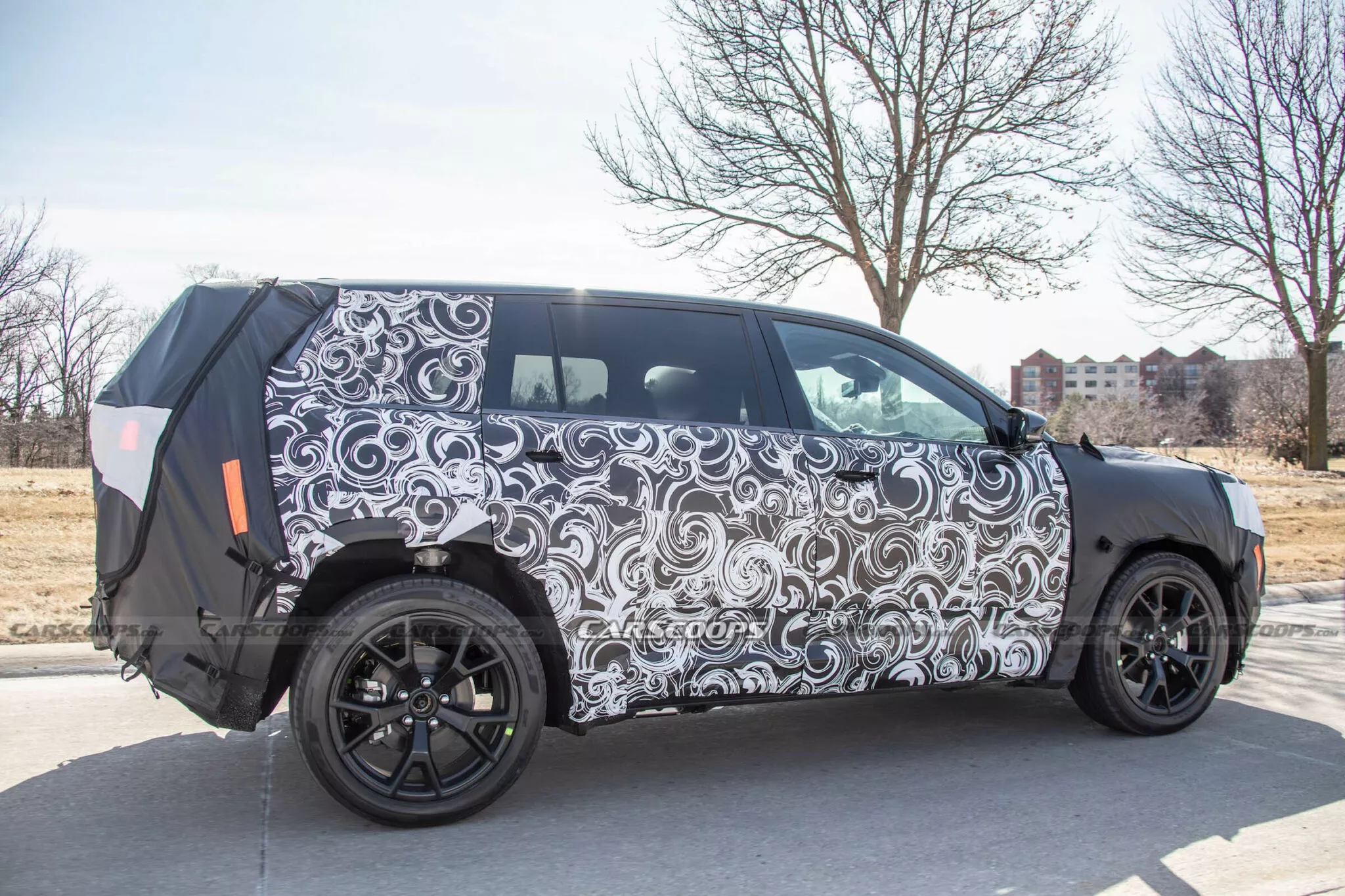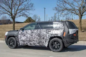 Casus fotoğrafçılar yeni Chezza’yı bir ay önce yakalamışlardı, ancak o ilk fotoğraflar kötü havada çok uzaktan çekilmişti. Bu sefer orta boy SUV’u yakından görme fırsatı buluyoruz, ancak hala kamuflajla kaplı. Yere sıfır kulpları da içeren ön ve arka kapılarla birlikte gövdenin orta bölümü, doğrudan Wagoneer S’ten alınmış gibi görünüyor. Ancak Cherokee’nin daha dik bir arka kısmı var ve D sütunu daha kalın görünüyor çünkü arka çeyrek camı Wagoneer S’teki gibi otomobilin en arkasına kadar uzanmıyor.