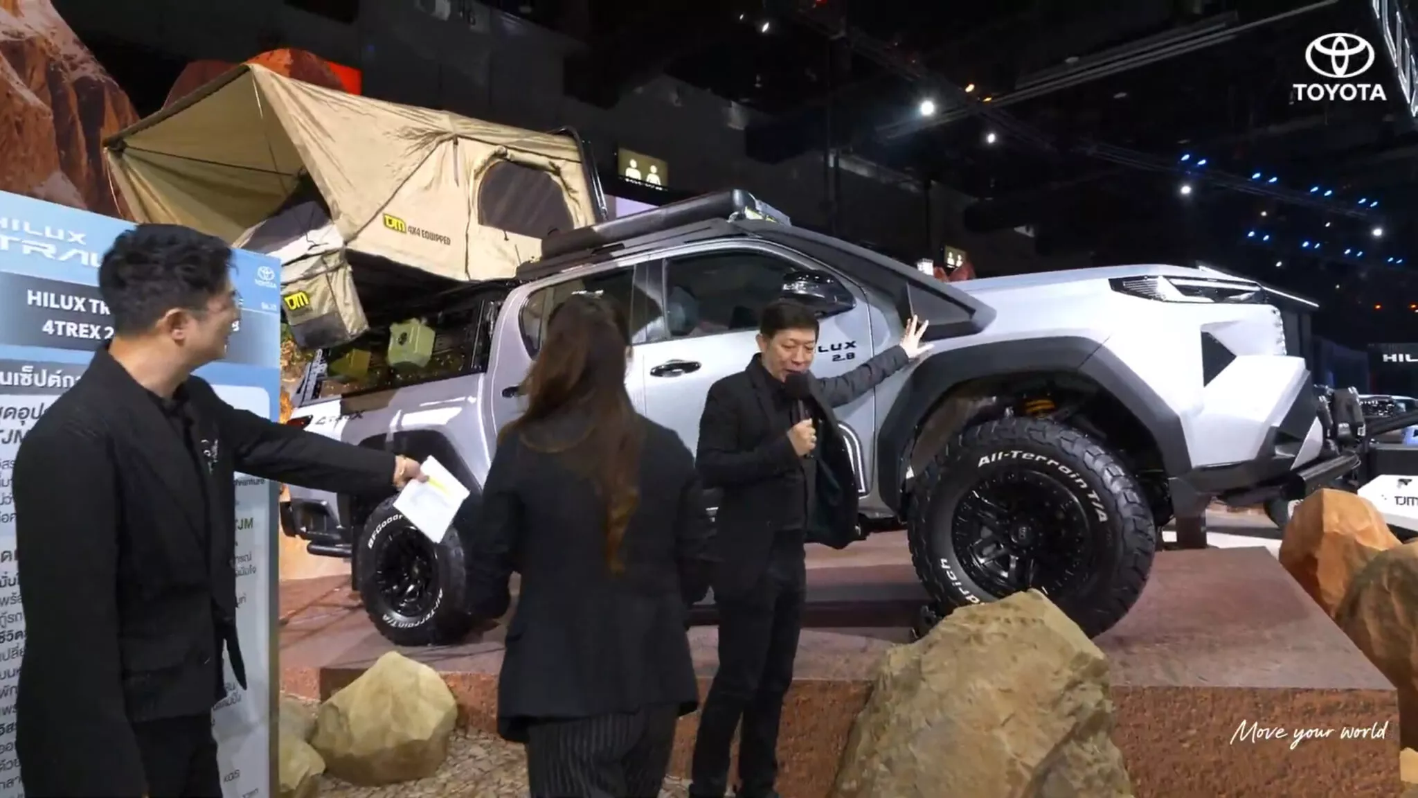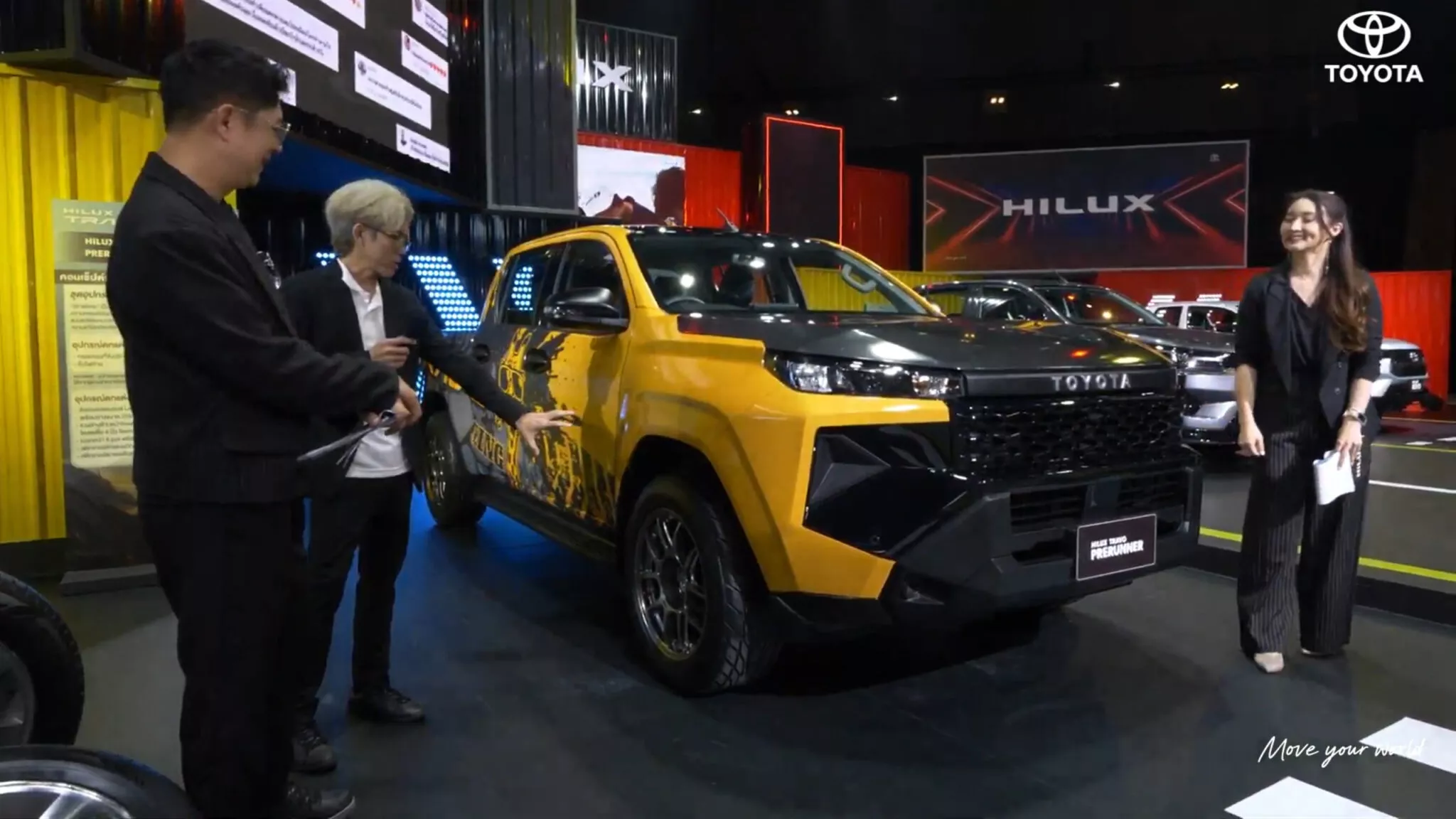 Avrupa ve Avustralya Hilux’un aksine, sadece çift kabinli formda gelen Tayland pazarı kamyoneti, Standart Kabin ve Akıllı Kabin konfigürasyonlarında mevcuttur. Standart Kabin, yükseltme kiti, siyah jantlar, beyaz-siyah grafikler, genişletilmiş aynalar ve açık kargo alanının yük kapasitesini artıran metal bir kafese sahip, özellikle pratik bir modelin temelini oluşturdu. Seriyi tamamlayan ise, kaput ve bagaj kapağı için karbon dokulu kaplamaya sahip sarı renkli, daha sportif, yola odaklanmış bir Hilux’tu. Yeni jantlar üzerinde daha alçak duruyordu ve güçlendirilmiş frenlerle destekleniyordu, ancak kalbinde 201 beygir gücü (150 kW / 204 PS) üreten 2.8 litrelik turbo dizel motor değişmeden kalmıştı. Pazara bağlı olarak, yeni Hilux serisi hafif hibrit dizel, benzinli ve tamamen elektrikli seçenekleri de içerecek, bu da modelin küresel çok yönlülüğünü gösteriyor.