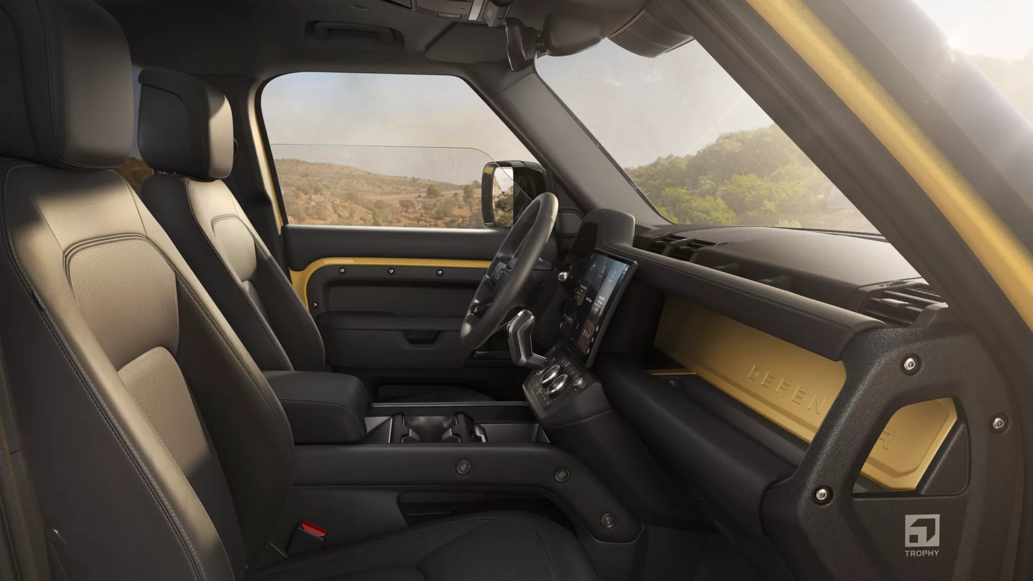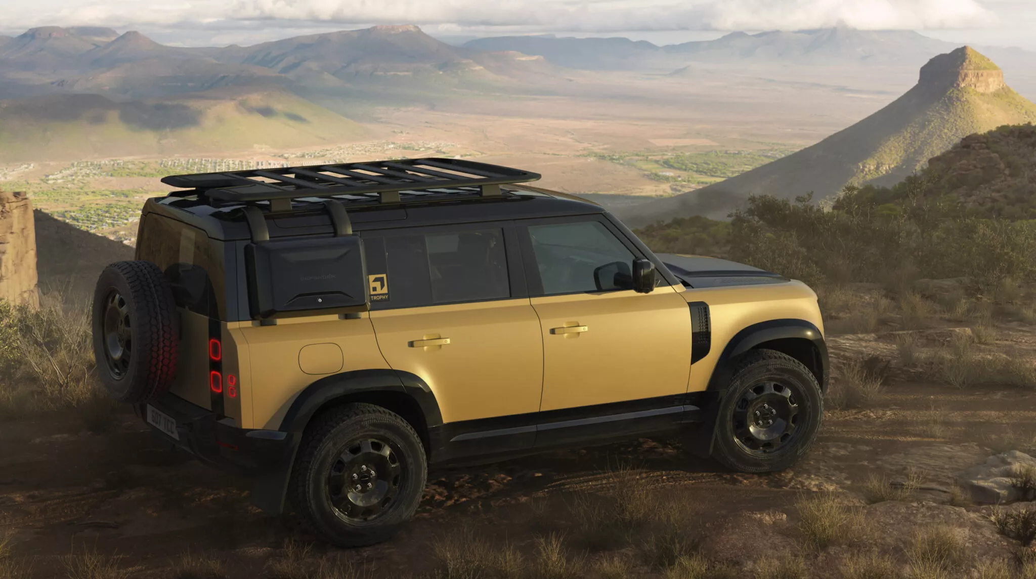 Dış tasarım detayları arasında 20 inç parlak siyah alaşım jantlar, arazi tipi lastikler, ön ve arka koruma plakaları ve kaput ile C sütununda yer alan Trophy logoları yer alıyor. İç mekânda ise Trophy logolu aydınlatmalı kapı eşikleri, Ebony Windsor deri koltuklar ve dış renkle uyumlu olarak boyanmış gösterge paneli kirişi bulunuyor.